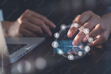Man using mobile smart phone for digital banking for Financial technology FinTech concept