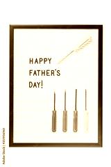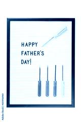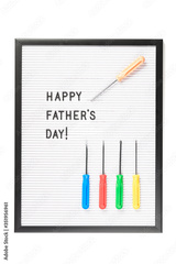 Happy Father's Day text on letter board isolated on white. Minimal framed text with colored screwdrivers. Copy space. Mockup or template poster for Father's Day sale