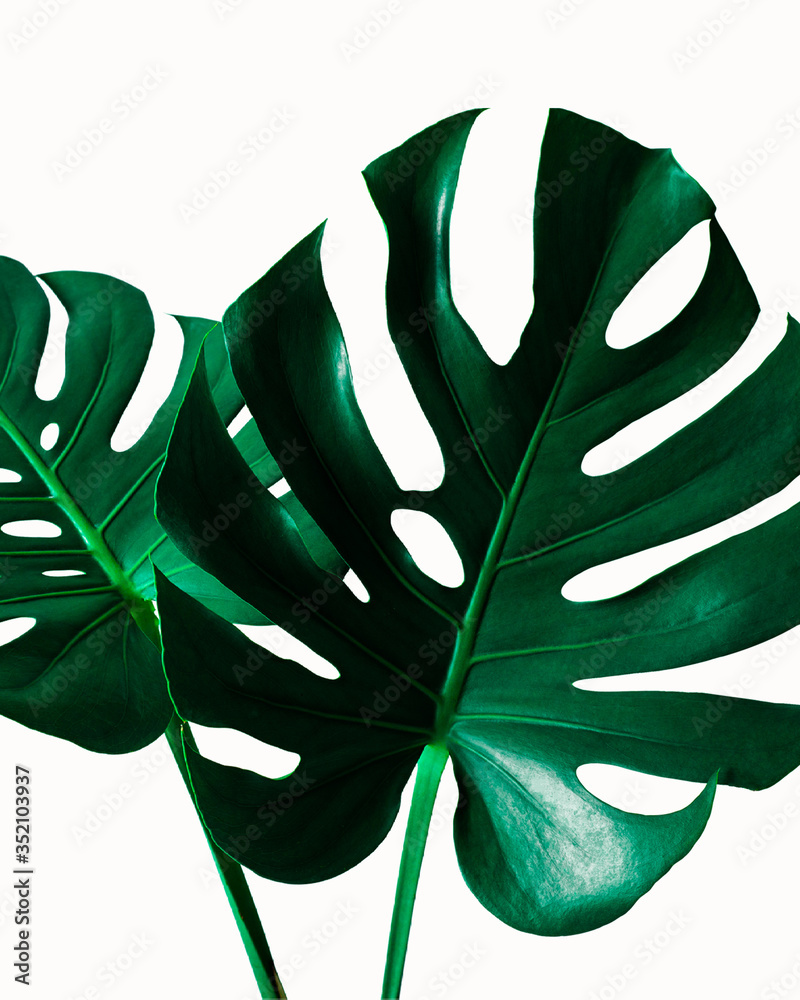 tropical monstera leaves nature frame on white background, nature flat lay concept