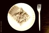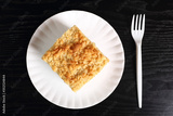 Apple Pie on disposable paper plate. Double crust apple pie with cinnamon made with shortcrust pastry.