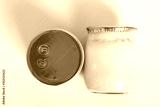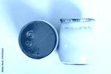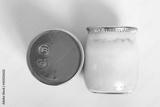 Yogurt in small glass jar with aluminum foil seal cap. Isolated