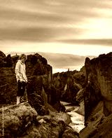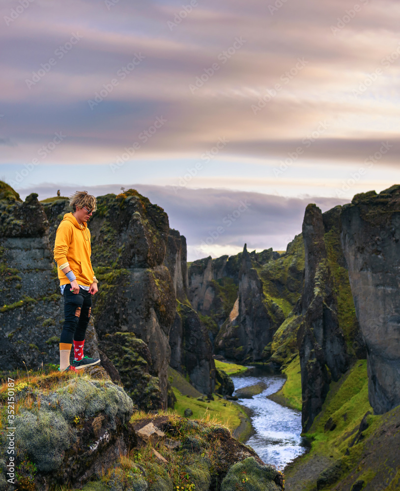 Young hiker standing at the edge of the Fjadrargljufur Canyon in Iceland