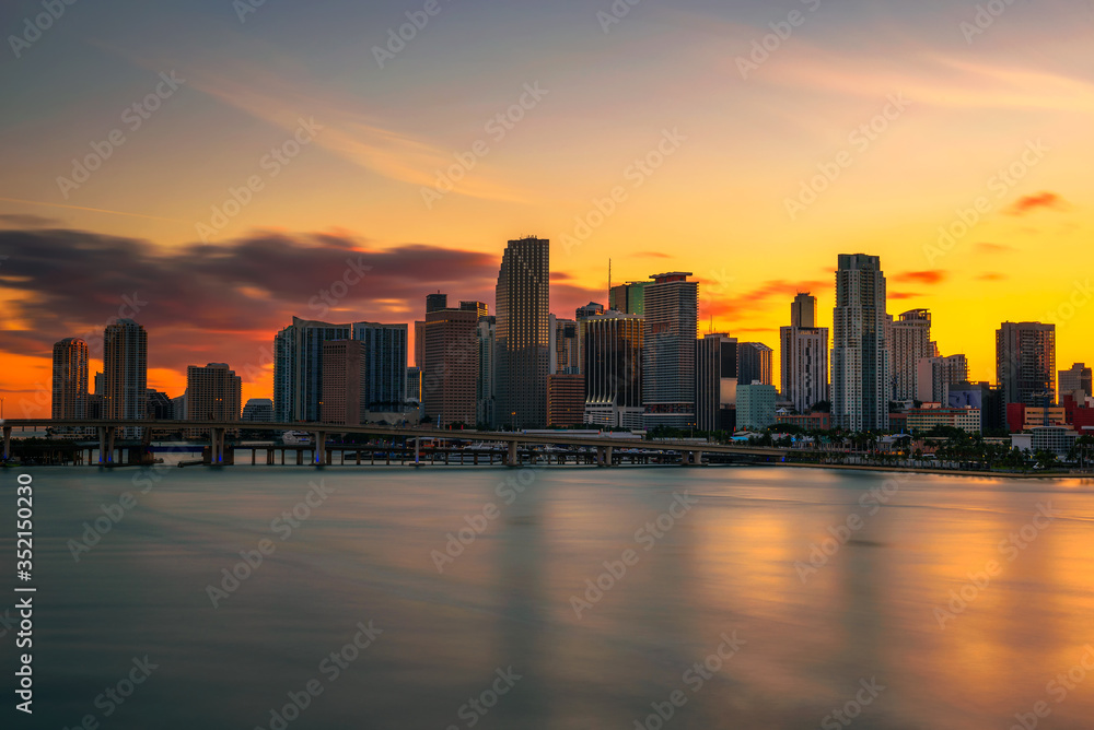 Sunset above Downtown Miami Skyline and Biscayne Bay