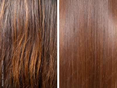 Sick, cut and healthy hair care straightening. Before and after treatment
