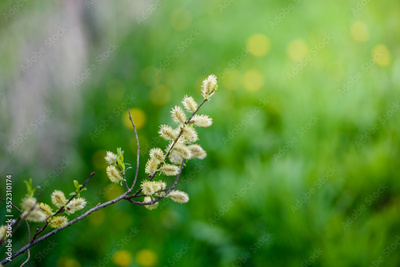 Green leaves on a branch-close-up. Beautiful summer background. Sunshine
