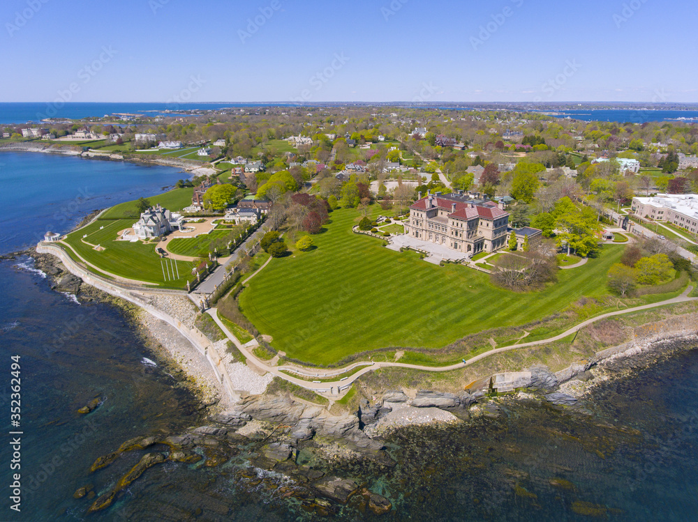 The Breakers and Cliff Walk aerial view at Newport, Rhode Island RI, USA. The Breakers is a Vanderbilt mansion with Italian Renaissance built in 1895 in Bellevue Avenue Historic District in Newport.