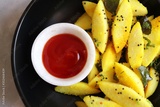 Tea time food - Masala idli or tadka fried idly is a very tasty dish made out of leftover idlis. best to eat as breakfast or snacks. served with tomato ketchup. copy space.