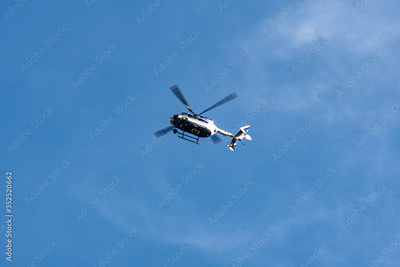 Hubschrauber der Polizei im Überflug bei Oppenheim, Rheinhessen