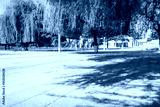Empty street at the nice and comfortable great garden under lovely blue sky