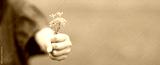 小さな花を差し出す子供