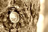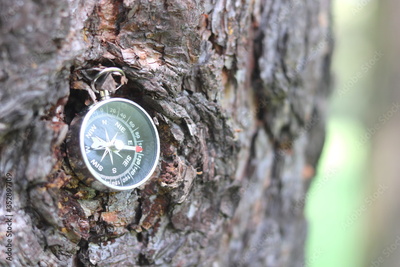 Old compass on natural background