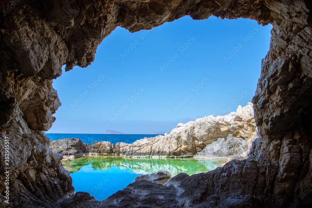 A small sea lagoon with a stone arch, gulf of Mirambello, Crete, Greece