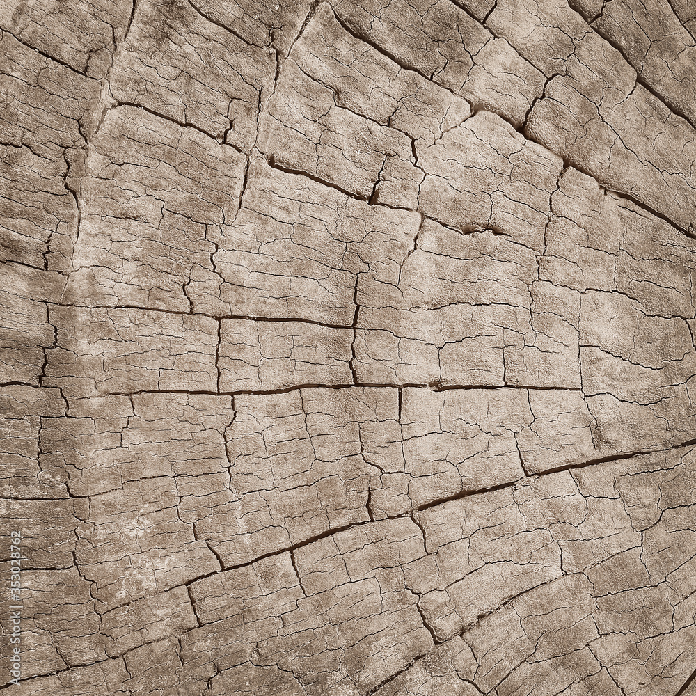 Weathered old gray tree trunk surface with annual rings closeup texture abstract nature background