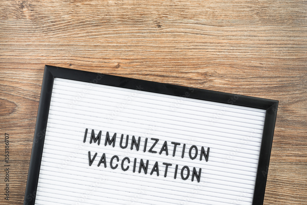 immunization term and syringe. medical concept. Text on white letter board. Minimal medical concept. vaccine research or administration. Pro and contra. Article caption