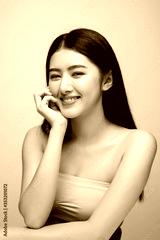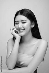 Portrait of young beautiful asian woman with Clean Fresh and without makeup skin. Healthy skin Girl beauty white skin makeup beauty female wellness and cosmetic ideas concept.Facial treatment and spa.