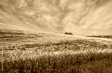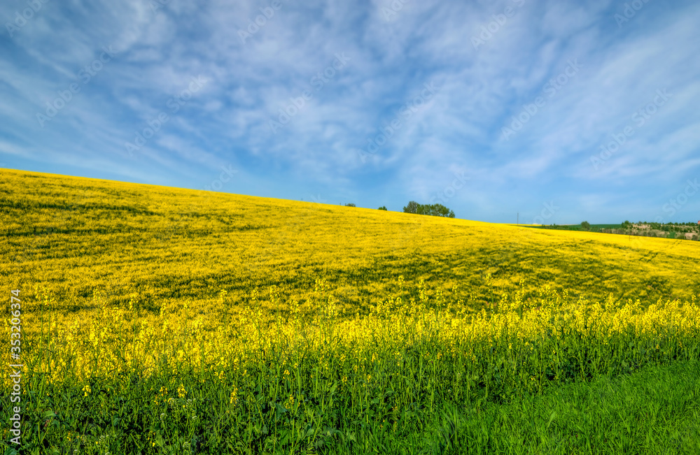 Wonderful panoramic view on the rapeseed field waves