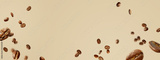 Food Mockup with flying coffee beans. Long banner.