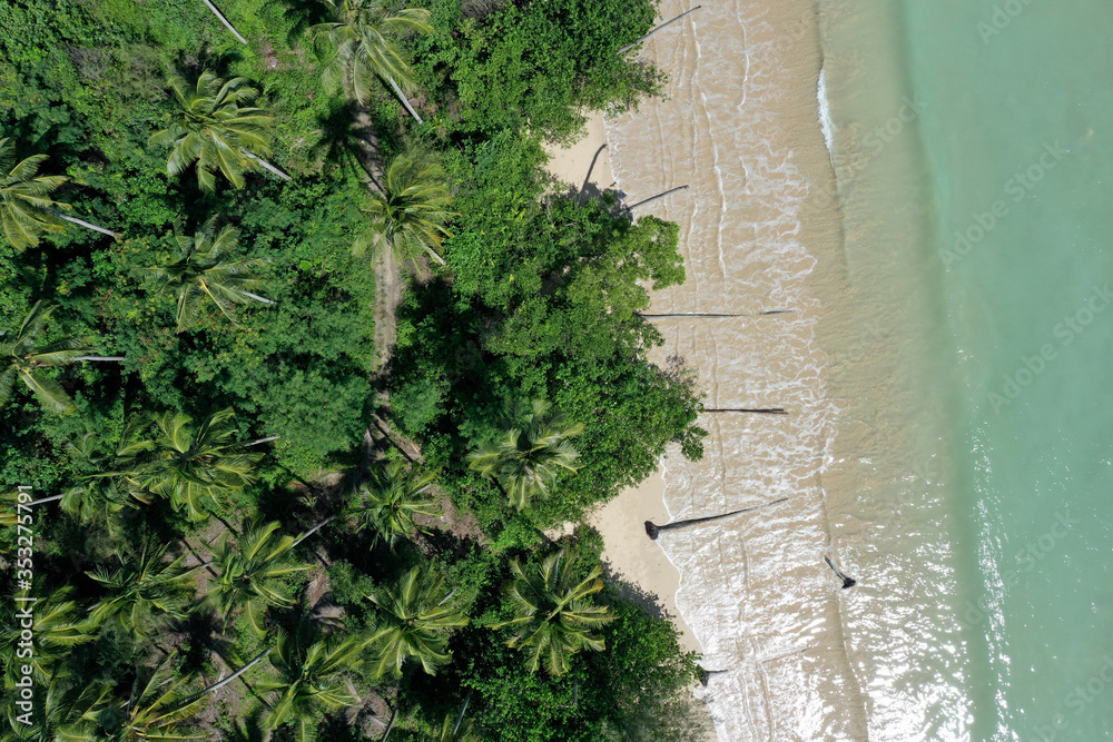 Aerial photo of palm trees, beach and coast
