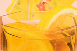 cold tea with lemon wedges
