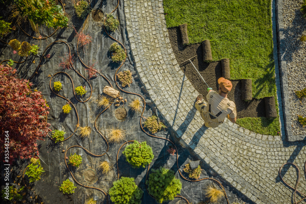 New Residential Garden Developing by Caucasian Landscaping Worker