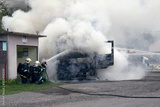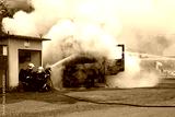 Fire truck. Thick gray smoke.