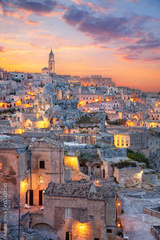 Matera. Cityscape aerial image of medieval city of Matera, Italy during beautiful sunset.