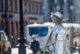 Russia, Saint Petersburg, may 23, 2020:a human artist depicts a monument on the street