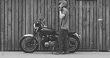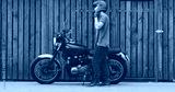 Handsome rider guy with classic style motorcycle