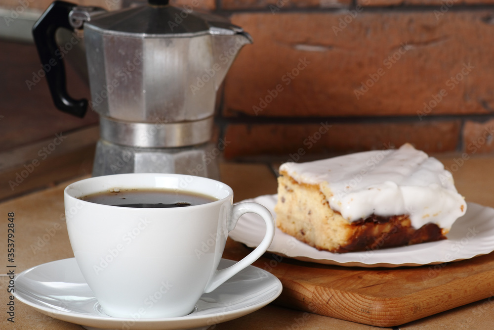 Coffee Cup and Cheesecake. Breakfast.
