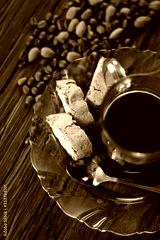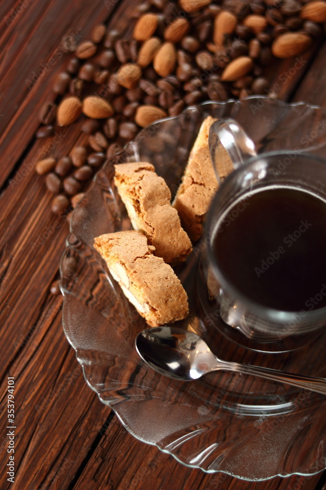 Italian almond biscuits cantuccini and coffee cup