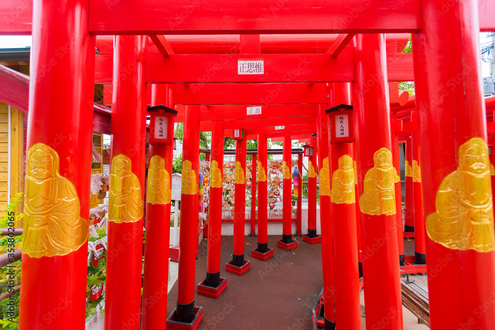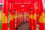 Red Tori gate at Sairaiin (Daruma Temple) in Naha, Okinawa, Japan