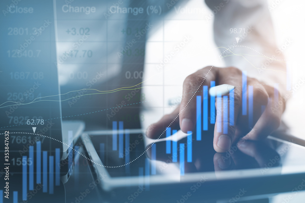 Businessman analyzing business marketing report with financial graph