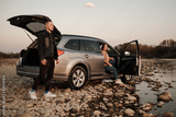 Young Couple Travel with a Car and Enjoys Ride, Weekend and Adventure Concept