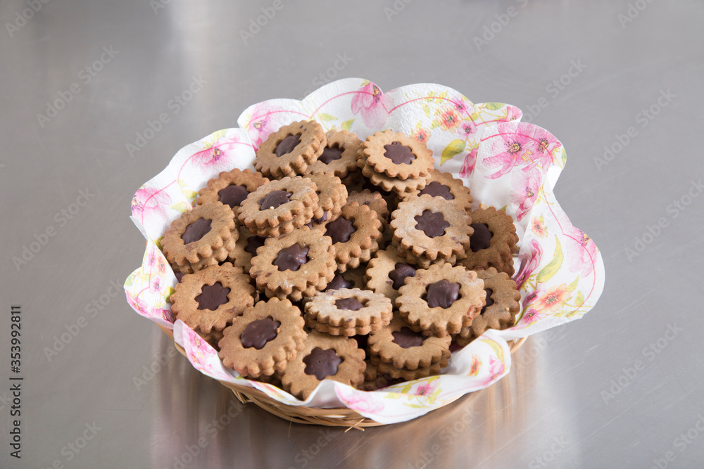 Delicious shortbread cookies in a wicker basket.