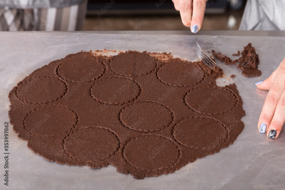 The process of making chocolate base for cake.