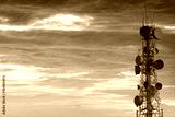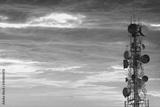 telecommunication tower at sunset sky background