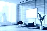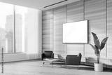 Wooden office lounge corner with armchairs and TV