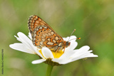 Marsh fritillary butterfly Euphydryas aurinia. Beautiful fritillary butterfly on meadow