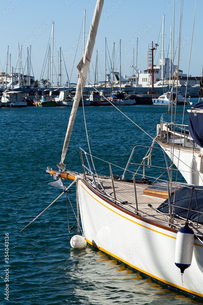 Boats and yachts moored at sea harbor
