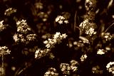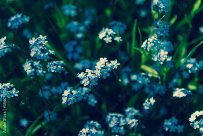 Forget-me-not flowers. Brown tinted glass. Dark background.