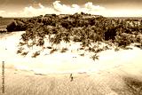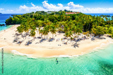 Aerial drone view of beautiful caribbean tropical island Cayo Levantado beach with palms. Bacardi Island, Dominican Republic. Vacation background.
