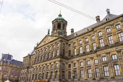 Close up of column detailed of Royal Palace Amsterdam in Amsterdam, Netherlands.
