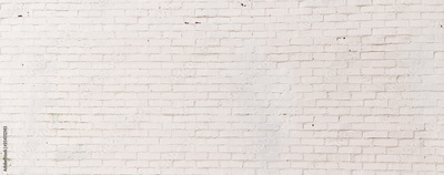 Wide white painted brick panorama backdrop, subtle texture creative copy space, horizontal aspect