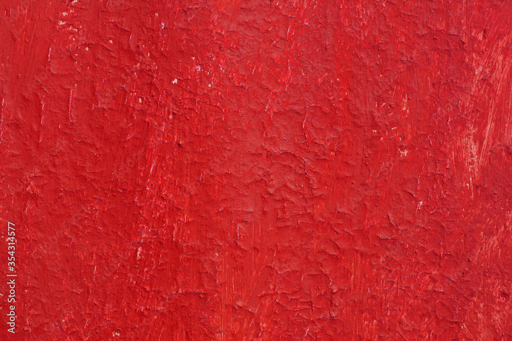 Beautiful vintage red background with old red paint with rough surface, streaks and uneven texture of red paint on old rough surface