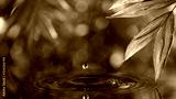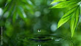 fresh green leaves with water drops over the water , relaxation with water ripple drops concept