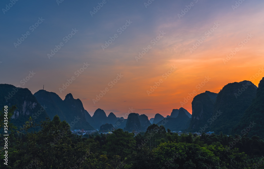 Yangshuo landscape panorama at dusk