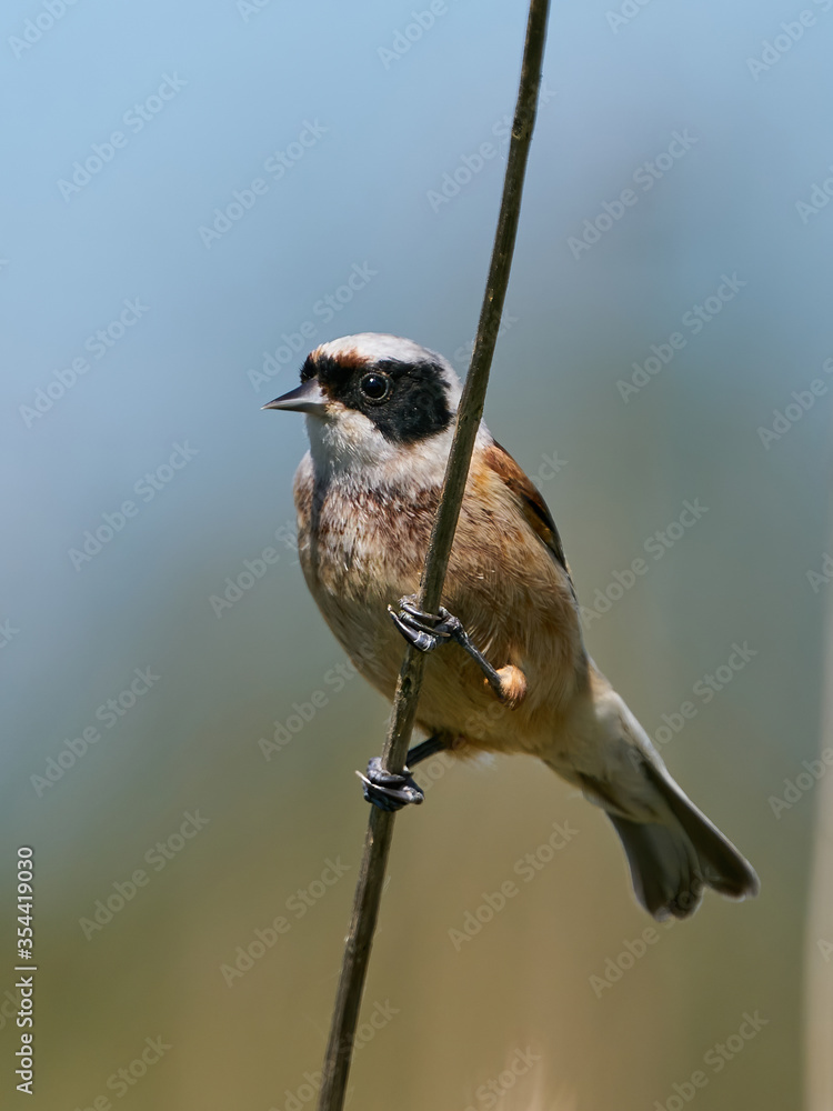 Eurasian penduline tit (Remiz pendulinus) in its natural enviroment in Denmark