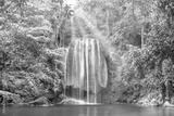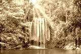 Beautiful waterfall and emerald lake in green tropical jungle forest. Nature landscape of Erawan National park, Kanchanaburi, Thailand