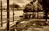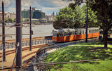 Tram in town Budapest Hungary urban summery landscape Europe. Stock photo.