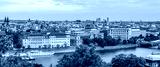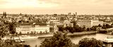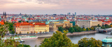 Sunset landscape view to Vltava river in Prague Czech republic. Stock photo.